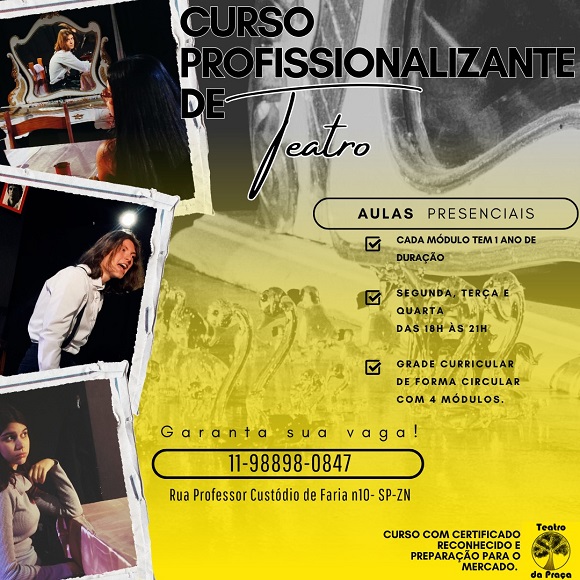O Teatro da Praça, espaço cultural independente com atuação contínua na formação artística, abre inscrições para o Curso Profissionalizante de Teatro – turma 2026. O processo seletivo acontece no sábado, dia 31 de janeiro, das 10h às 13h.